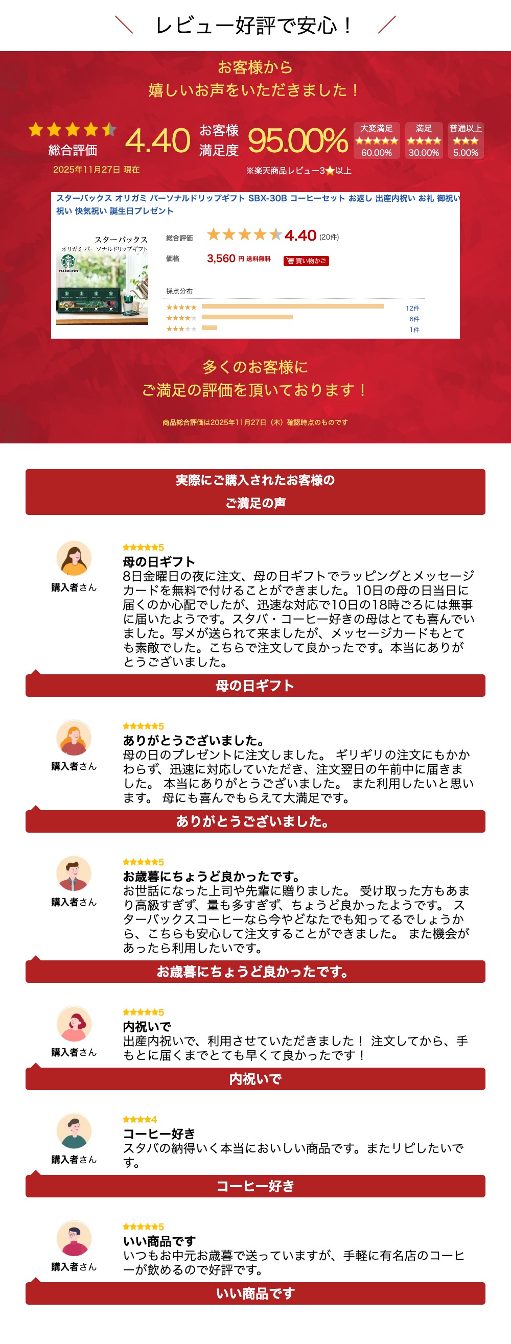 スターバックスのコーヒーの中でも特に人気のあるブレンドをセットにしているため、どれも満足度が高い商品ばかりです。ギフトとしても非常に喜ばれます。